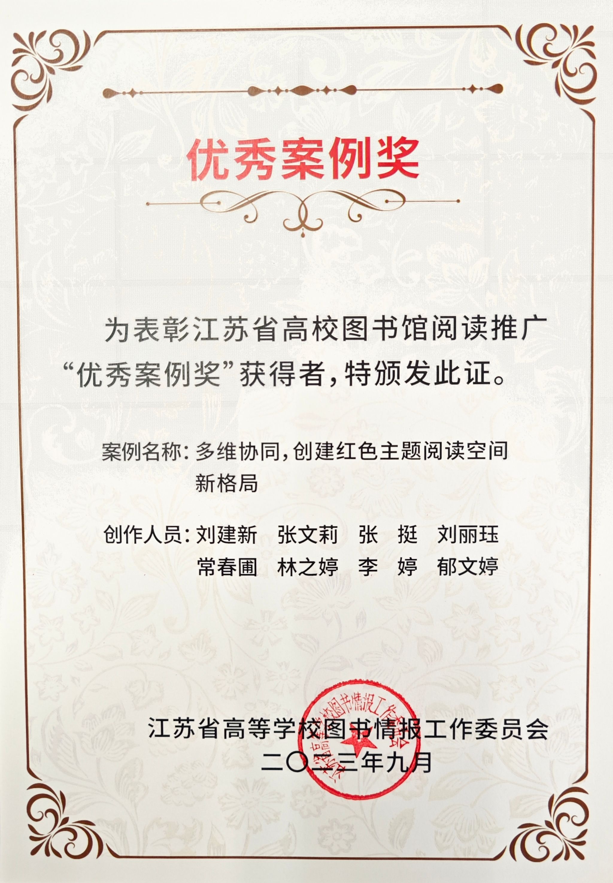 为全面推进江苏省高校全民阅读工作深入开展,深入交流各高校图书馆阅读推广工作经验,增强图书馆人的创新服务意识,提高图书馆知识服务水平,形成爱读书、读好书、善读书的浓厚氛围,今年上半年由江苏省高等凯发图书情报工作委员会主办,面向全省高校开展了阅读推广优秀案例征集活动。经各高校图书馆推荐申报、专家评审及专委会主任会议审议,并经各单位公示、师德师风审核合格,共评选出48项“优秀案例奖”。我校图书馆申报案例位列其中。