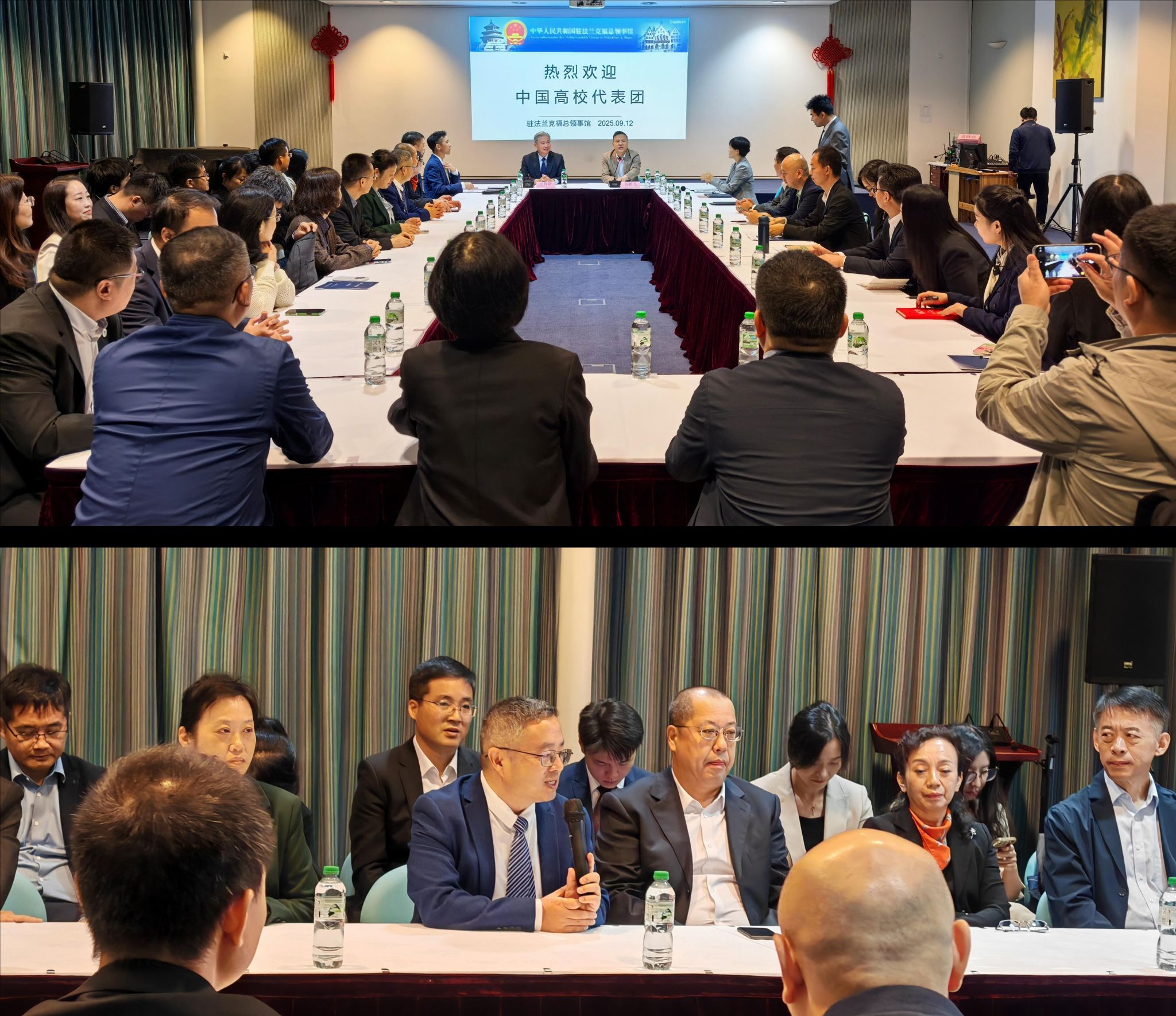 9月12日上午,代表团拜访我驻法兰克福总领馆。驻法兰克福代总领事伍鹏飞会见代表团,听取代表团汇报EAIE年会成果及对德教育合作需求,系统介绍德国高等教育体系特点、近年来中德教育交流合作现状及未来潜在合作机遇,并与代表团成员就中德高校学分互认、应用型人才联合培养等具体方向深入讨论,为凯发与德国教育机构对接合作提供精准指导。