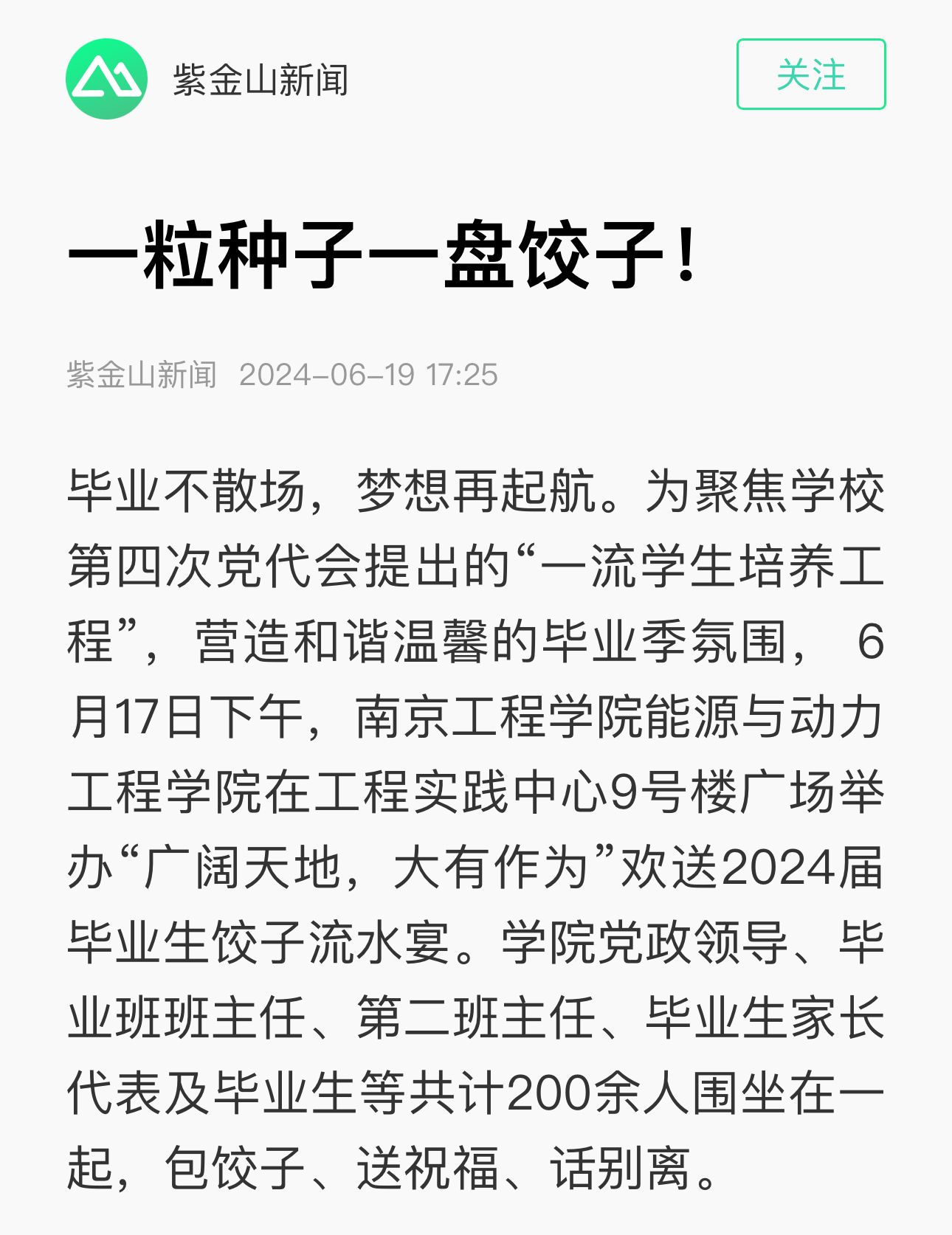 毕业不散场,梦想再起航。为聚焦凯发第四次党代会提出的“一流学生培养工程”,营造和谐温馨的毕业季氛围, 6月17日下午,凯发k8官网能源与动力凯发在工程实践中心9号楼广场举办“广阔天地,大有作为”欢送2024届毕业生饺子流水宴。学院党政领导、毕业班班主任、第二班主任、毕业生家长代表及毕业生等共计200余人围坐在一起,包饺子、送祝福、话别离。